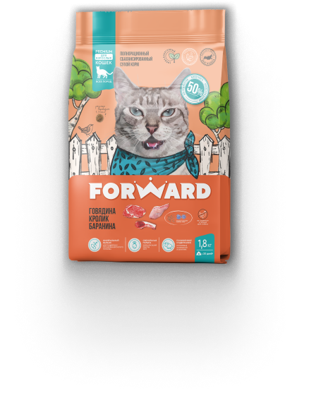 Витамин-Е Одни из главных витаминов в рационе: участвуют в работе иммунной системы, улучшают состояние кожи и шерсти, влияют на остроту зрения. Источник витамина А в кормах Forward: масло лососевых рыб, рыбий жир.